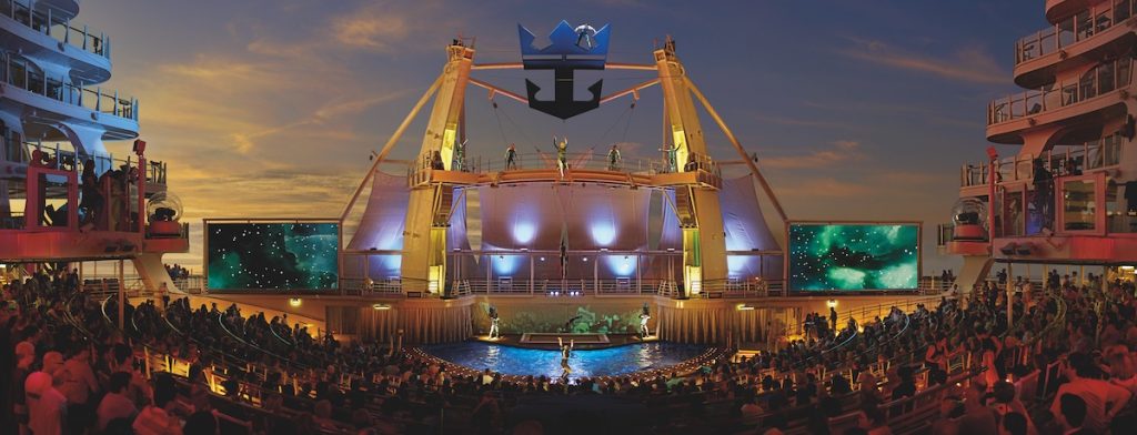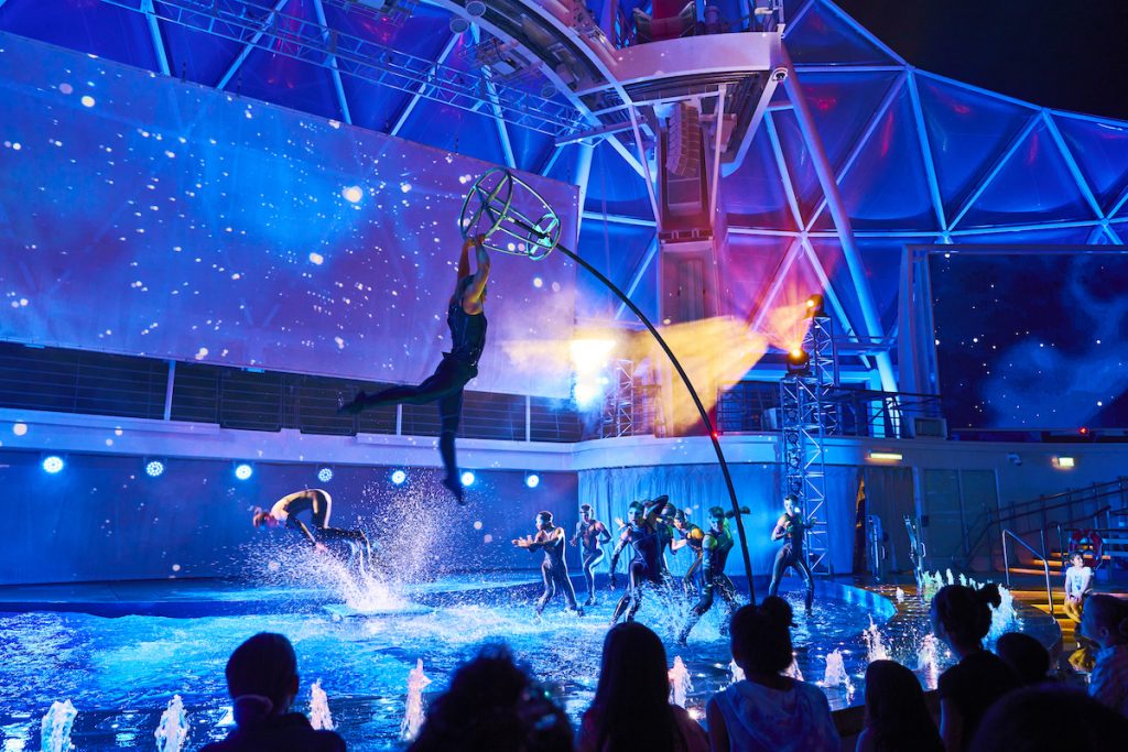 Aside from musical entertainment, each ship has an AquaTheater where a specialized acrobatic/diving/synchronized swimming show is performed. Do NOT miss this show as it stars many former Olympic athletes and will blow your mind with what these performers can do while the ship is moving. I also enjoy the Headliner shows held at The Royal Theater, which often have former contestants from America’s Got Talent, as well as the ice-skating-themed shows in Studio B.
