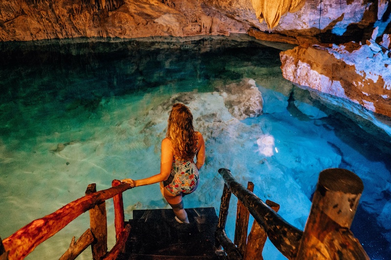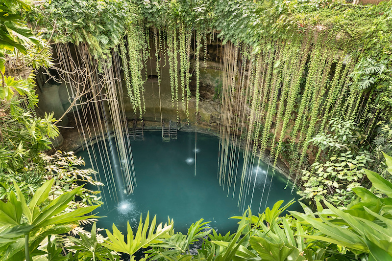 Closed cenotes are the least common type of cenote in Playa del Carmen. They are completely enclosed underground, making them ideal for spelunking (exploring caves). However, closed cenotes can be very dark because they don't have any natural light; they can only be accessed by descending through a small opening.